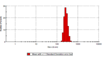 The size of the prepared nanoparticles was analyzed by using Photon Correlation Spectroscopy (PCS). All samples were diluted with ultra-purified water, and the analysis was performed at a scattering angle of 90 °C and at a temperature of 25 °C [17]. The mean diameter for each sample and mean hydrodynamic diameter was generated by cumulative analysis in triplicate.