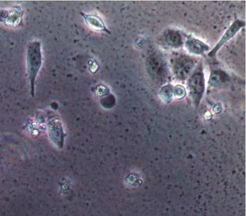 The U-87 MG Cells were treated by GCB loaded with MPEG-PCL nanoformulation (GCBNP 3) which shows maximum intracellular accumulation. The cellular uptake of GCB loaded MPEG-PCL nanoparticles in U-87 MG cells were examined under fluorescence microscopy and the images are shown in fig.11.