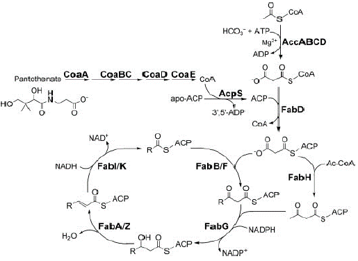 Fig. 1: The bacterial type II fatty acid biosynthetic pathway [72]