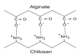 Fig. 1: Schematic representation of the ionic interactions between alginate and chitosan