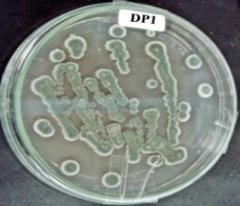 IP-1 Colony pigmentation:bluish green Colony shape:entire edge Texture:spongy. Elevation:growth into medium |