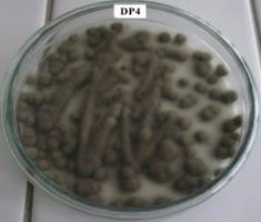 IP-4 showed septate brown hyphae, elliptical to cylindrical conidia, pale to dark brown in colony color, terminal, and intercalary swelling conidiophores (fig. 2). These characters make it classified into Cladosporium sp. This fungus produces antibacterial compounds such as cladosporine, methyl cladosporine, dimethyl cladosporin and mono acethylcladosporine (table 2) [22].