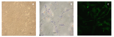 NCM were cultured in 0.1% gelatine coated 96 well plates for about 70-80% confluency. NCM were pretreated with different concentration (10 U/ml, 15 U/ml and 20 U/ml of rhEPO) and incubated for 24 h and followed the treatment as described in the treatment of NCM. The MTT [3-(4, 5-dimethylthiazole-2-yl)-2, 5-diphenyltetrazolium bromide] were added to each well and incubated at 37 ˚C in a CO2 incubator for 4 h [24]. Soluble yellow color MTT is reduced by mitochondrial succinyl dehydrogenase into insoluble purple formazan. The insoluble formazan product was dissolved in 50 µl DMSO and incubated for 10 min and read absorbance at 540 nm.