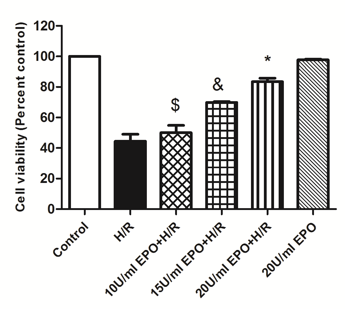 Fig. 2: Pre-treatment of rhEPO Increases Cell Viability in H/R-Induced NCM