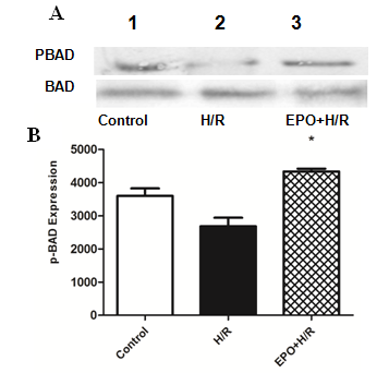 Fig. 7: Western blot analysis demonstrating the effect of rhEPO on BAD