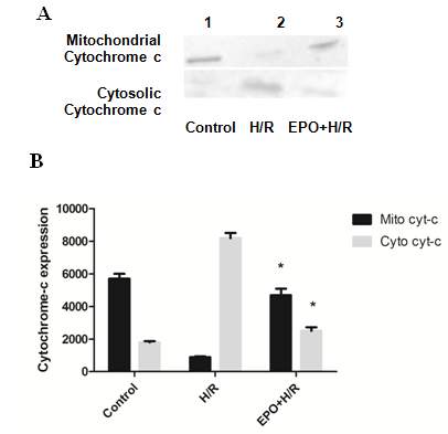 Fig. 8: Western blot analysis demonstrating the effect of rhEPO on cytochrome-c