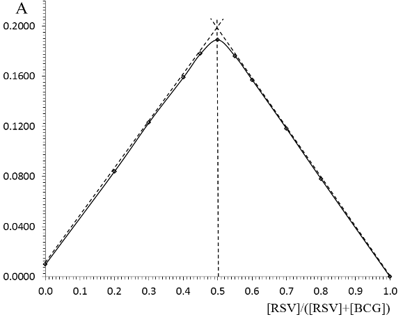 The composition of RSV: BCG complex was determined by the molar ratio method and Job's method of continuous variation.