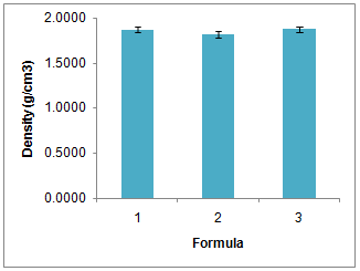 The density of the implant with three different concentration of glutaraldehyde can be seen in fig. 3. Statistically analysis using one-way anova showed that there was no significant difference of density between the implants which used three different concentration of glutaraldehyde (P>0.05). Based on this results, could be concluded that the difference of glutaraldehyde concentration did not affect the implant density.
