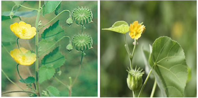 It is found in hotter parts of India as a weed in the sub-Himalayan tract and other hills up to 1.200M, the use of the root in gout, polyuria and hemorrhagic disease, the drug exhibits immunological activity was reported [7]. Abutilon indicum is a perennial shrub, softly tomentose and up to 3 m in height. The leaves are evergreen, Base-cordate, stipulate, filiform, ovate, acuminate, toothed, rarely sub trilobate and 1.9-2.5 cm long. Petiole 1.5-1.70 cm long, cylindrical, yellowish in colour, stellate and hairy. The flowers are yellow in color; peduncle jointed above the middle. The petioles are 3.8-7.5 cm long; stipules 9 mm long; pedicels often 2.5-5 mm long, axillary solitary, jointed very near to top and the seeds are 3-5 mm, kidney shaped, reniform, tubercled or minutely stellate hairy, black or dark brown. It is used as anthelmintic, antiemetic, anti-inflammatory, in urinary or uterine discharge, piles, and antidote. It is used in the treatment of fever, dry cough; bronchitis, gonorrhea and leprosy were reported [8].