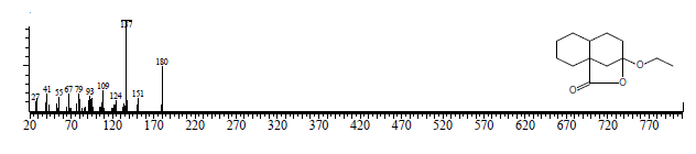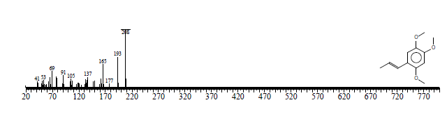 Fig. 11: MS of 1, 2, 4-trimethoy-5-(1-propenyl) benzene: C12H16O3; MW: 208