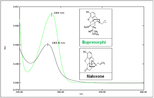 Fig.1: Overlain spectra of buprenorphine HCl and naloxone HCl