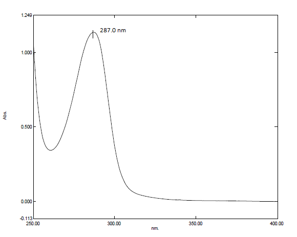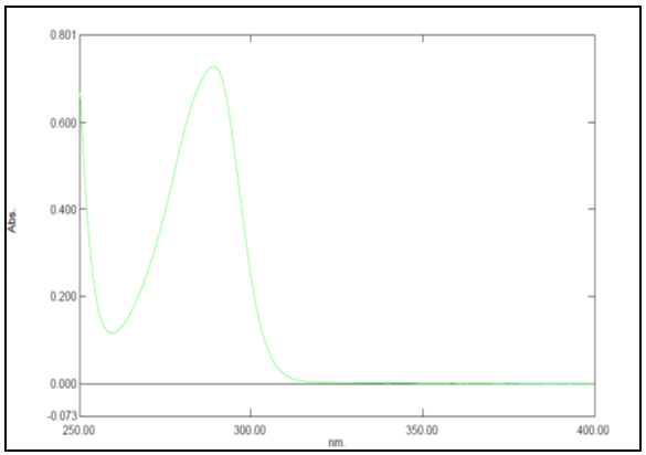 The specificity test demonstrated that the excipients did not affect the drug determination as depicted in the fig. 5 & 6, respectively. Thus, no interference was observed at 289.0 nm and 283.9 nm indicated that the method is specific.