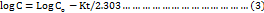 Where, K is the first order rate constant (Units: time) and the equation (2) in logarithms