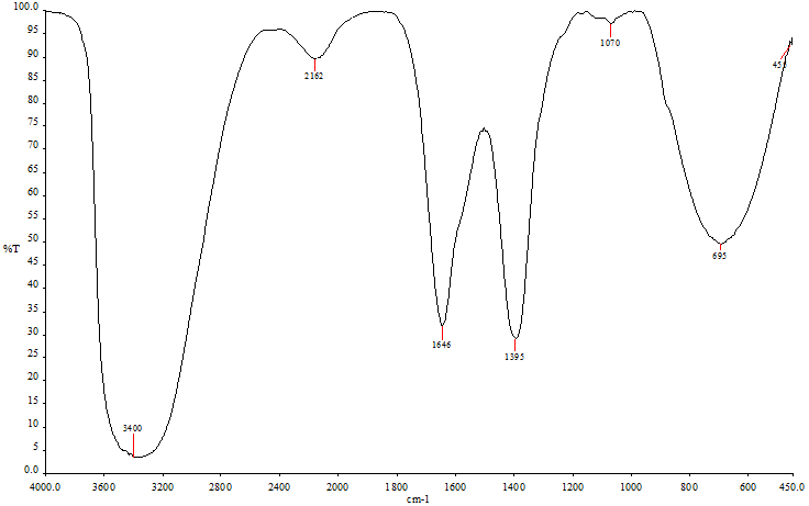 Hence, the IR spectrum clearly indicates the existence of monovalent substituted carboxyl group, keto group, and nitrogen substituted heterocyclic ring may be porphyrin ring system.