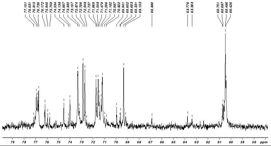The carbon–13NMR spectral analyses were performed by taking the sample in NMR tubes dissolved in D2O. The NMR was recorded at 25.15MHz on a Burker AV III series instrument.