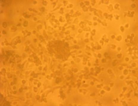The cells were examined by phase contrast microscopy for evidence of morphological apoptosis. The cells showed typical polygonal intact appearance. The CHL-treated cells exhibited morphological characters like Cellular shrinkage (low toxicity), rounding (medium toxicity) and poor adherence (high toxicity) as well as round floating shapes (fig. 19).