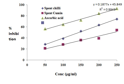 Table 1: IC50 Values of spent chilli and spent cumin extracts and standard ascorbic acid
