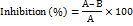 Where, A is the enzyme activity in control and B is the activity in the presence of extract.