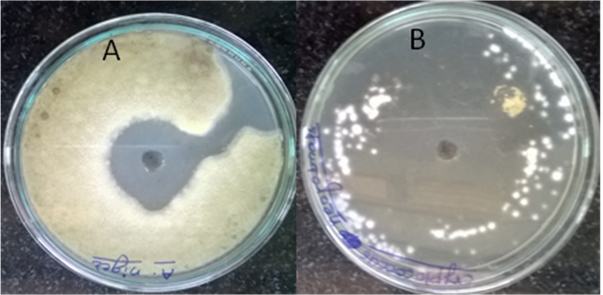 Fig. 7: Antifungal activity of TRA-1 extract against A. niger (A) and C. neoformans (B) by agar well diffusion method