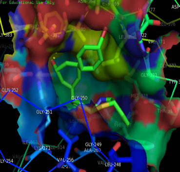 ALA-380, PHE-382, 317 LEU-298, 378, 372,VAL-299, GLY-250, 321, GLU-316, ILE-315, MET-318, THR-319 |