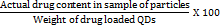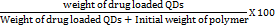 The drug loading of prepared Eudragit E PO loaded QDs was determined by using above formula. The obtained values were put into a formula, and drug loading was calculated.