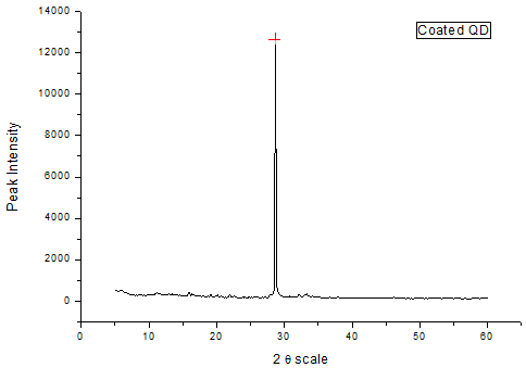 An XRD peak mainly depends on the crystal size as they indicate the crystalline nature at a particular value at 2Ө range. In this study, pure 5-fluorouracil has shown a sharp peak indicating its multi-crystalline nature. Eudragit E PO diffractograms showed peaks indicating its amorphous nature. The diffractogram of Eudragit E PO coated QDs also showed the crystalline nature. The diffractogram of Eudragit E PO was found different from the Eudragit E PO coated QDs, as it was noticed that amorphous nature of polymer was changed into crystalline nature in Eudragit E PO coated QDs.