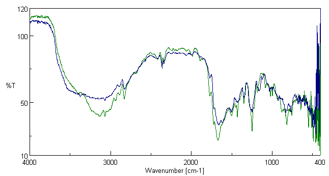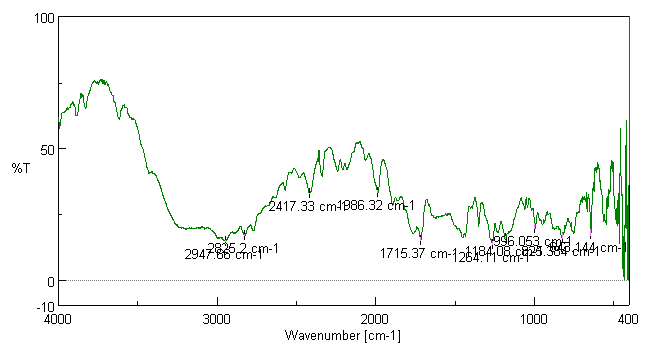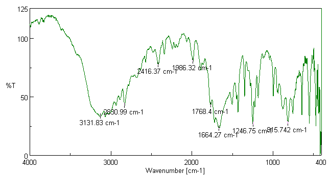 The FT-IR of pure 5-FU was carried out to determine the functional groups present in it as depicted in (fig. 11) [8, 10]. The FT-IR of Eudragit E PO was also performed as shown in (fig. 12). The FT-IR of zinc chloride and Eudragit E PO was carried out to determine the interaction between drug and excipients as shown in (fig. 13). The FT-IR of drug loaded QDs were done and interpreted. The FT-IR of Eudragit E PO coated QDs was done and interpreted. The overlay of drug loaded QDs and Eudragit E PO coated QDs is shown in (fig. 14).
