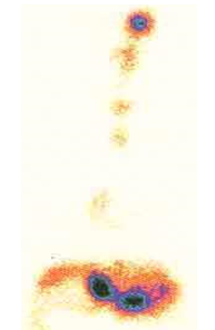 In order to visualize brain uptake following intranasal administration of [99]mTc tagged ATX solution and ATX-Lipo formulation gamma camera was used. The use of gamma ray emitting radionuclide [99]mTc helped to perform imaging studies to complement the information obtained from tissue distribution experiments. fig. 4 and 5 depict the gamma scintigraphic images for intranasal ATX solution and intranasal ATX+PHE Muco Lipo respectively at 30 min post administration in rats. This was consistent with the results obtained from fig. 1 and table 5.