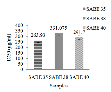 The three isolates of SAB produced crude extracts as yield, ranging from 0.01% to 0.02% weight per volume with SAB E 38 as the highest yield producer (table 1).
