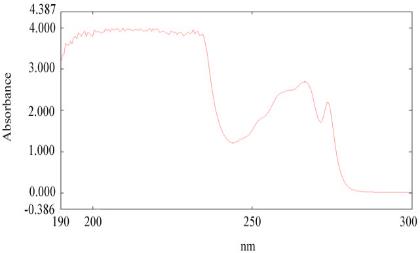 Fig. 3: UV scan of NFH solution in phosphate buffer, pH 7.4