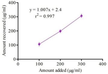 Linear regression of calibration curve was performed using Graph Pad Prism version 5.01 for windows (Graph Pad Software, San Diego California, USA). The statistical difference (*p<0.05) was considered significant.