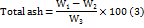 Where,W1 =weight of crucible after ignition, W2=Blank weight of crucible and W3=weight of mucilage.