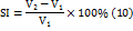 Swelling index (SI) is expressed as a percentage and calculated according to the following equation: