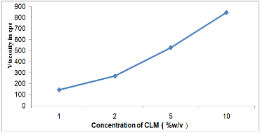 Fig. 1: Apparent viscosities (cps) at different concentrations of CLM FT-IR spectroscopy of CLM