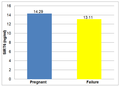 Fig. 1 showed the serum SIRT6 level in pregnant and failure groups. Serum SIRT6 showed the insignificant difference between groups.
