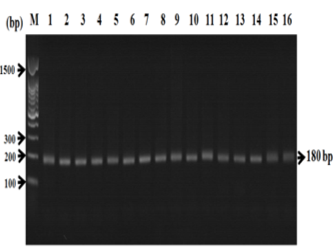 Analysis of the 16S rRNA gene of actinobacteria was carried out by 2 steps of PCR using two sets of specific primers for actinobacteria detection. The first primer set was 27F and 16Sact1114R with product size ~1087 bp. ThePCR product was used as a DNA template for the second PCR. The second primer set was P338F and P518R with product size ~180 bp (fig 1).