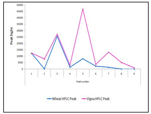 Fig. 4: HPLC peak height of wheat and Vigna peptides