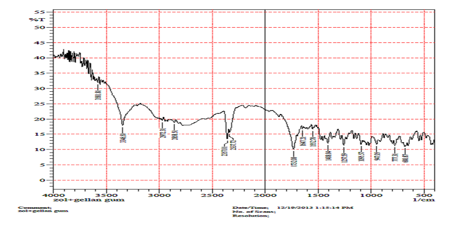 Gellan gum solutions of various concentrations were prepared by adding the gum to deionised water and heating up to 90◦C continuing stirring remi- stirrer. After cooling to below 40◦C, HPMC K100, Zolmitriptan (25% w/v), mannitol (5%, w/v), and Benzalkonium chloride (0.01%, w/v) were added and mixed well. Three various kinds of Zolmitriptan in situ gels were prepared at the concentrations of Gellan gum which were 0.3%, 0.6%, 0.9% and with combination of HPMC K100 concentrations0.10%, 0.13% and 0.0.15% (w/v) respectively.(Table No.2)