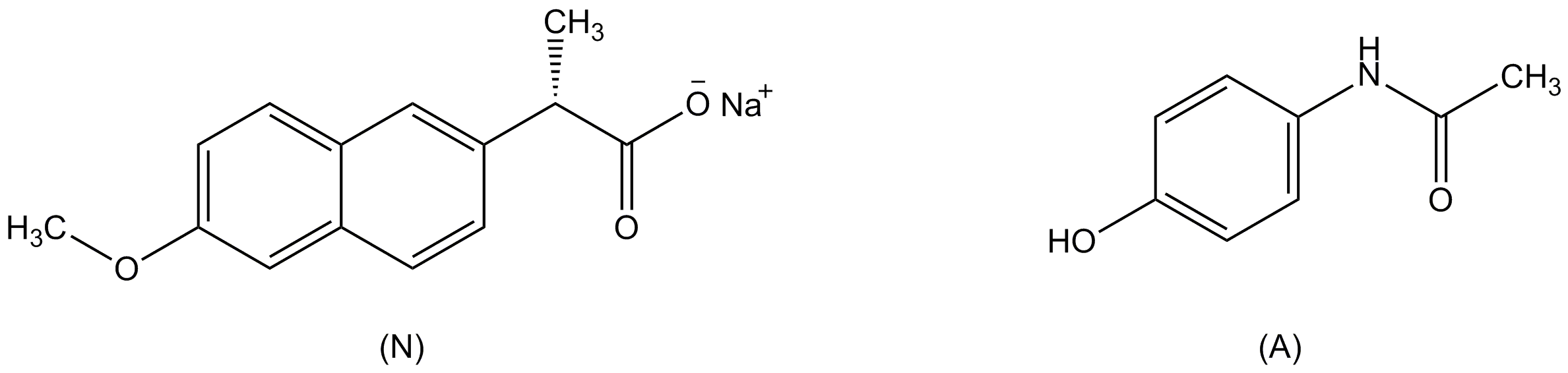 Fig. 1: Chemical structure of naproxen sodium (N) and acetaminophen (A)
