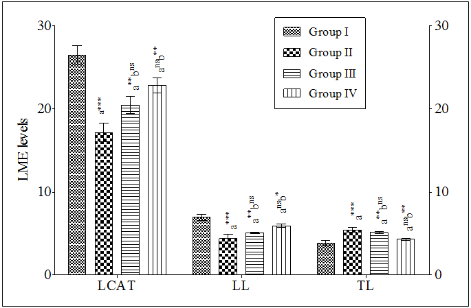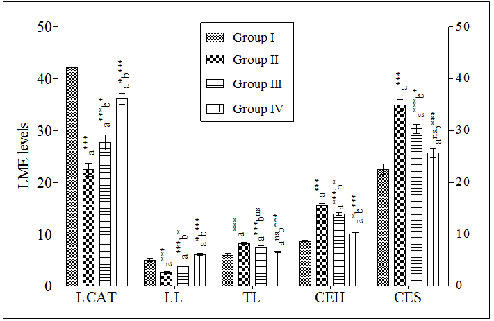 Fig. 5: LME levels in liver tissues of all experimental group animals