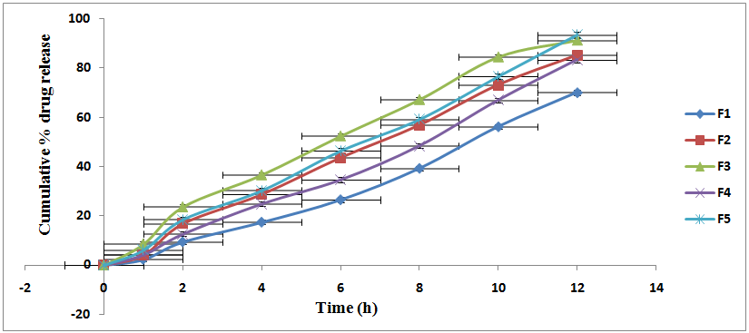 Table 4: Cumulative %drug release of formulations F1-F5