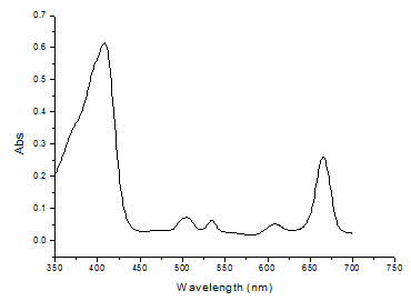 The experimental electronic spectra of porphyrins are very specific. Because of their highly conjugated ring, porphyrin-like systems show an intense band (ε ~ 200000) at about 400 nm called the Soret or B band while in the region of 500-600 nm there are usually four weaker distinct of Q bands. Q bands have the low energy S0 → S1 transitions (Q-bands) that are nearly forbidden by parity rules as a result of the high D2hsymmetry while B band has the most intense appears at higher energy allowed S0 → S2 transition [17].