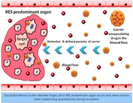 Immunological response to foreign moiety is the natural phenomenon of the body which can be utilized for the passive targeting mediated by the invasion of the drug and drug carrier systems on the basis of their physicochemical properties. Particlesuptake by the cells of the RES is an excellent example of the passive targeting. The endeavor potential of macrophages for rapid recognition and clearance of foreign particles has provided a rational approach to macrophage-specific targeting with nano-carriers. Passive capture of colloidal carriers by macrophages offers therapeutic opportunities for delivery of antileishmanial drugs in leishmaniasis since it involves macrophages cells of the RES (fig. 2).