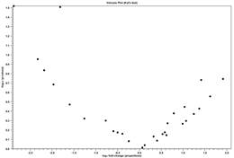 Fig. 5b: Volcano plot of NFX1 TF in R-M vs R-PI libraries. Source: author’s own results