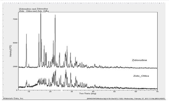 Fig. 9: XRD of a) Pure zidovudine b) drug loaded microspheres
